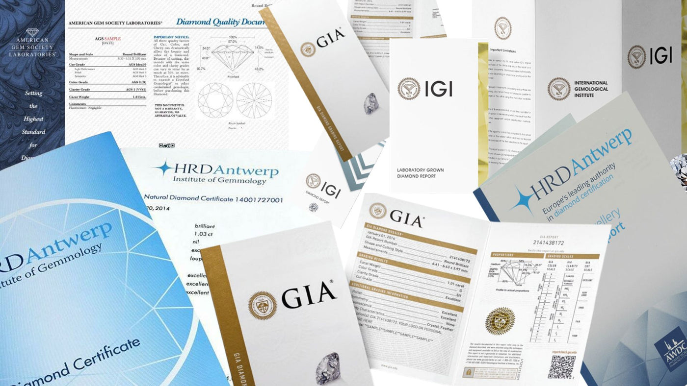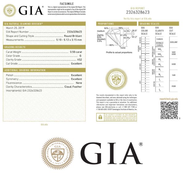 The diamond certificate (diamond grading report) provides valuable information about each diamond. It is the diamond's identity card. Furthermore it represents an essential guarantee to protect you from a possible deception or swindle, to avoid hidden defects and to precisely determine the value of your diamond.