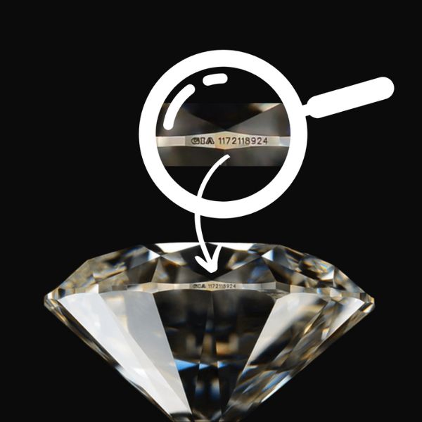 Each diamond is unique and has a number which is mentioned on its certificate. This number can also be inscribed on the diamond's girdle (the outline), which attests to the good correspondence between the stone and the certificate and gives you a double guarantee of conformity. This laser inscription is generally present on diamonds certified by the GIA, HRD and IGI laboratories in which the mentions "Laser Inscription" or "Laser scribe" are indicated.