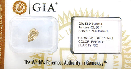 Diamantaire since 1975, Bourse of Antwerp1.14 carat Pear diamond Brown SI2