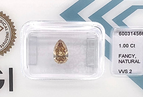 Diamantaire since 1975, Bourse of Antwerp1.00 carat Pear diamond Brown VS1
