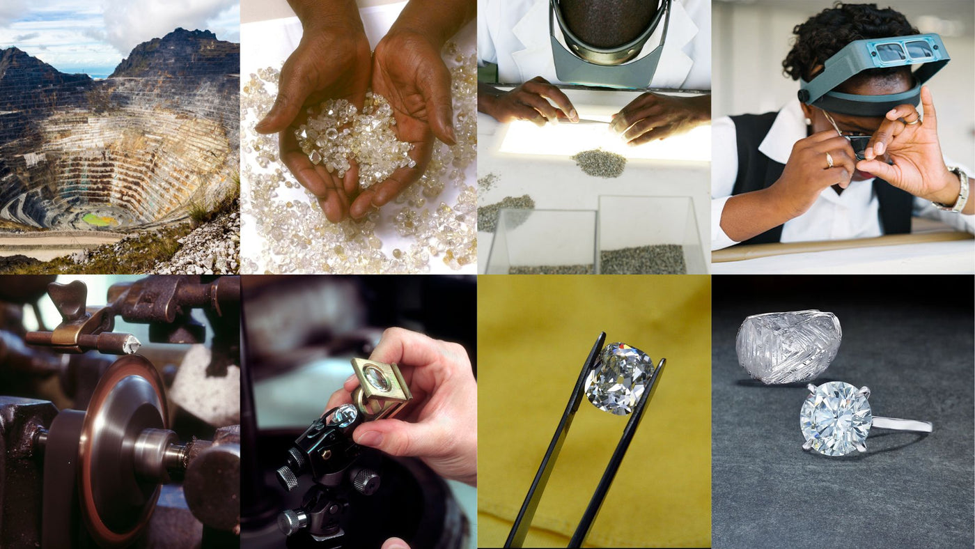 Das folgende Schaubild hilft Ihnen, alle Schritte auf dem Weg eines Diamanten von der Mine bis zu Ihnen besser zu verstehen.