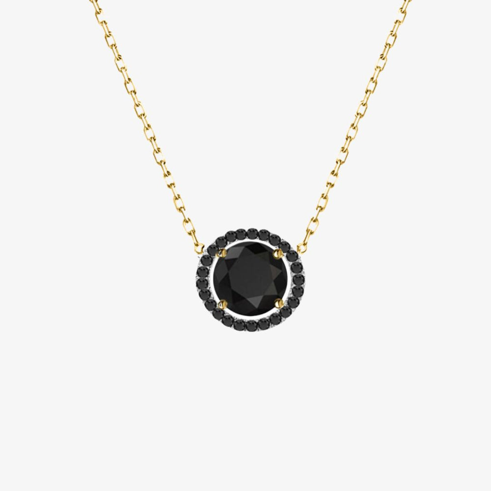 Black Diamonds. Solitaire Halo Gold Necklace