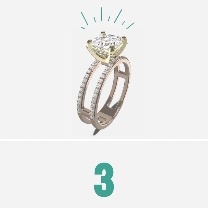 בחרו את צבע הזהב לראש השיבוץ: לבן, צהוב או ורוד, וכן את טוהר הזהב – 14 קראט או 18 קראט.
